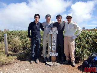 ひととおり写真を撮ったあとに10:35に山頂出発。 10:50に巻機の分岐に到着したら、Y.I・Y.T・M.Sの皆さんはもう牛ヶ岳にもいってきたようで、下山の準備がととのっている。 4人で写真を撮って、11:00に下山開始。。また多くの登山者とすれちがいながら 12:11に6合目で休憩。登るときには暑いと感じたが、樹林の中に座っていると涼しいという感じがする。 12:16出発。 意外にそこからが長かった、これだけ登ったかなと思うくらい下山する。 アルミのステッキを持っているので、バランスはとりやすい。 道もぬれて滑りやすいというところもないので快調に下山することができた。 最後に2合5尺の看板をみたあと、13:13駐車場に到着する。 |