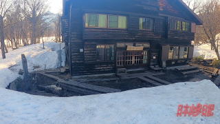 6:38龍宮小屋到着。 最初、景鶴山に登ったあとに、この小屋に宿泊しようかと思ったが、4月26日土曜日は満室で予約ができなかったという事情がある。 朝早い登山者の方が小屋の外に出ていた。 7:25牛首分岐で休憩する。 下の大堀川橋を渡るところでは木道部分の雪で融けていたりするが、後はほとんど雪の下に木道は埋もれていて、ずっとアイゼンをつけたまま歩いた。アイゼンの前づめが雪にひっかかって転倒するケースが一度あった。後ろの登山者が近くにいたので恥ずかしかった。