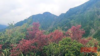 11時43分、七合目到着。ここは見晴らしがいいのでここで昼食を摂ることにした。まだここから標高差300m以上登らなければならない。 朝、出発する前に湯を注いでおいたアルファ米を食べて元気になって出発である。 何しろ今日は標高1600mを登るタフな一日となる。急な登りを上がるが、すでに森林限界を超えており眺めはよい。八合目の手前は転落注意と書かれた看板があってロープが張ってあった。 ここから南へ明日縦走する丹後山への稜線が見えた。丹後山の避難小屋はかわいい屋根を持つ小屋であるのがわかった。