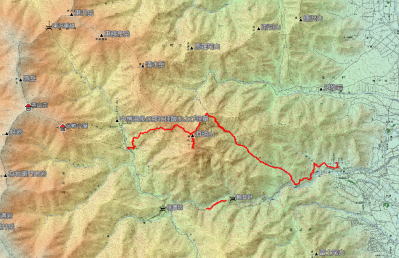 妙見の滝を過ぎてアジサイの咲く坂道で少し傾斜が緩やかになってくる。ていら岩と呼ばれる花崗岩の一枚岩のところをすぎ、さらに川沿いに沿って下りていく。 三本ナラという林の中の目印をすぎ、16時36分道標が現れた。黒沢口の登山口である。 ここからは林道歩きである。 16時55分舗装された県道に合流した。