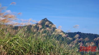 14:43、冠平分岐を出発。 来るときに歩いた道を冠山峠へと戻る。 思ったよりもアップダウンがある道であった。 クマに出会わないように途中でホイッスルを吹きながら進んでいく。最後のピークを越えると道は平坦になり、ススキの向こうに先ほど登った冠山が綺麗に見えた