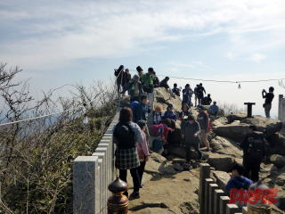 11:02男体山の御神殿に到着。かなり急峻な場所に社が建っている。 そしてその横には社務所があって御朱印祈祷やお守りの販売をしている。 筑波山の面白いところは山自体を宣伝しているWEBサイトがあることである。(www.mount-tsukuba.com) トレイルの紹介もしており、興味深い。 ちなみにわれわれが下山に使うユースホステル跡から登る道は「深峰歩道」と呼ばれる1.2㎞の初級コースである。