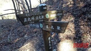 刈場坂峠を出て目指す正丸峠まではおよそ1.5hのコースタイムである。 13:06、虚空蔵峠に到着。秩父から遥々九州沿岸の防備に向かう防人も越えたといわれる、秩父・奥武蔵山域では最古の峠らし。峠の片隅には像容の風化が著しい年代不詳の虚空蔵菩薩が寂しげに佇んでいる。脇には ちょっとしたあずまやがある。 さらに進み、途中、旧正丸峠の道標が関東ふれあいの道の撮影スポットとなっている。13:35、踏破の証拠写真を撮影。 ここからも正丸駅に降りることができるようだが、本来のルートである正丸峠を目指す。