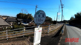 茨城県かすみがうら市上志筑 五輪堂バス停10:55到着。 ここが「関東ふれあいのみち 茨城県コース⑬ 果樹園の里のみちのスタートである。ここまでの1時間弱は単純にコースへのアプローチであった。何しろここまでのバスの本数が限られているのでなかなかうまく時間を合わせてここからスタートするというのは大変なのではないだろうか。関東ふれあいの道ができた頃に比べてパスの便が悪くなっているという現象は各都道府県の悩みだと思う。