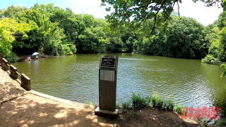 湖の周りを周回できるので歩いてみることにした。一番西の端に行って眺めると、吉祥寺の井之頭公園くらいの木々の豊かな眺めを見ることができた。 湖(池)の南側の道は自然のトレイルで遊歩道はなく、ハイヒールなどでは歩きにくい場所だった。 トレイルを走る練習になる。上之池を一周して東の端に到着。 震生湖の登録記念碑があった。 2020年11月に国の文化審議会は「震生湖」を国登録記念物に認定したという。 1923年9月1日の関東大地震によって斜面が約250mにわたって地滑りを起こし、土砂が市木沢を閉塞してできた堰止湖。水が流れ込む川がなく、地下水脈でつながっているのが特徴だという。 橋をわたって再び北岸へ行くと寺田寅彦の句碑があった。